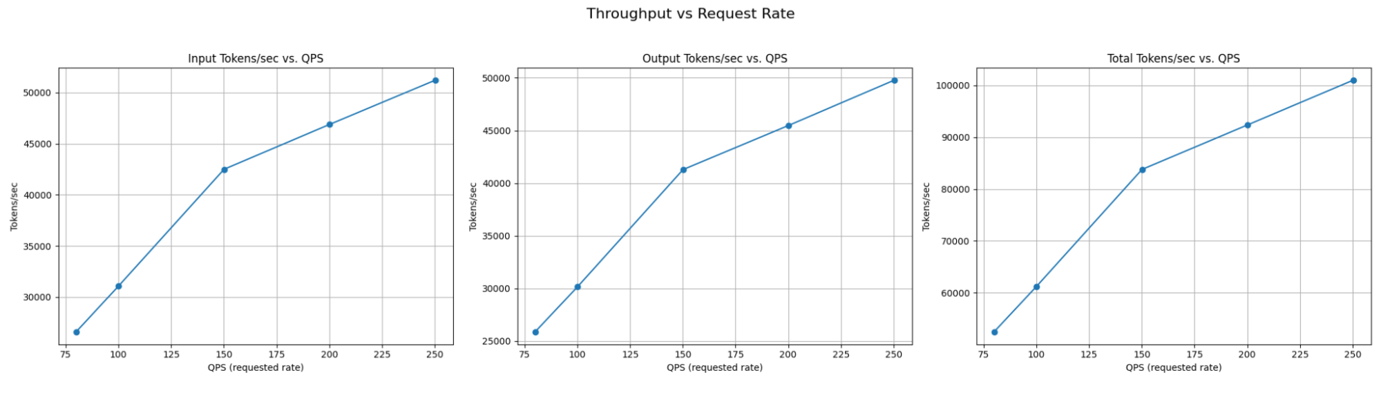 - Topology: 8x vLLM pods / 16x NVIDIA H100 GPUs (TP=2)